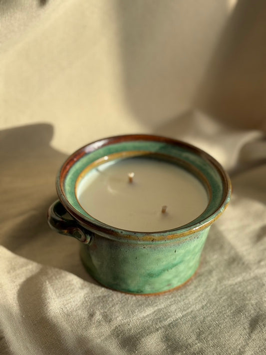 Cocotte verte en terre cuite fait main